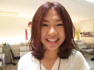 いい笑顔いただきました~(>▽<)前髪は長めで大人な雰囲気残しつつ、コテで仕上げてふんわりボブの完成です♪