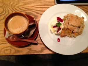 そして、クランブルとは暖かい果物の上にクッキーのようなものを砕いて作ったものをのせて頂くホットスイーツです♪かなりおいしいです!!