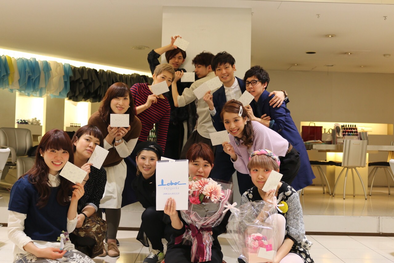 投稿日: 2015年4月7日2015年4月5日 投稿者: Fujigaoka小木曽さん最後の日 うちだ 3月をもって退店した小木曽さん最後の日 みんなでオリジナルカレンダーと花束を贈らせて頂きました 私は小木曽さんとは10年近く一緒に働いてきましたが 誰よりも努力家で絶対に最後まで諦めない LOBEC一のスタイリストだったと思います これから新しい環境でも頑張って頂きたいですね