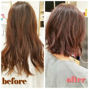 投稿日: 2018年3月11日バッサリカット☆ スタイリストの久野です! 春なので!イメチェン☆ 新生活を新しいスタイルにしてみませんか! ロングを、バッサリミディアムに☆ カラーは、PINKベージュで♪